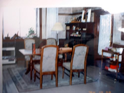 映画では,居間と台所は行き来出来るようになっているが,2つは隣り合っているものの実際は壁で仕切られている.壁をぶち抜いて撮影が行われたと言う.左の写真は撮影当時のもの.ダイニングテーブルも同じ.藤井家の夕食メニューは,ほっけ塩焼き,肉じゃが,サラダ,粕漬など..